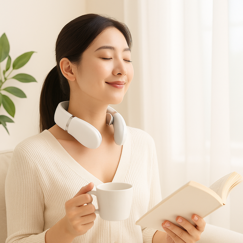Experience the next generation of comfort with SmartNeck — a sleek, intelligent massager designed to relax deep muscle tension through soothing heat and EMS pulse therapy.